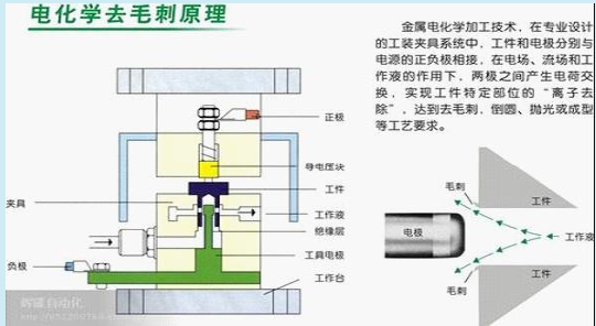 ??ECM電化學(xué)去毛刺(electrochemical machining-ECM)是利用金屬在電解液中發(fā)生陽極溶解反應(yīng)而去除工件上多余的材料、將零件去毛刺的一種方法。